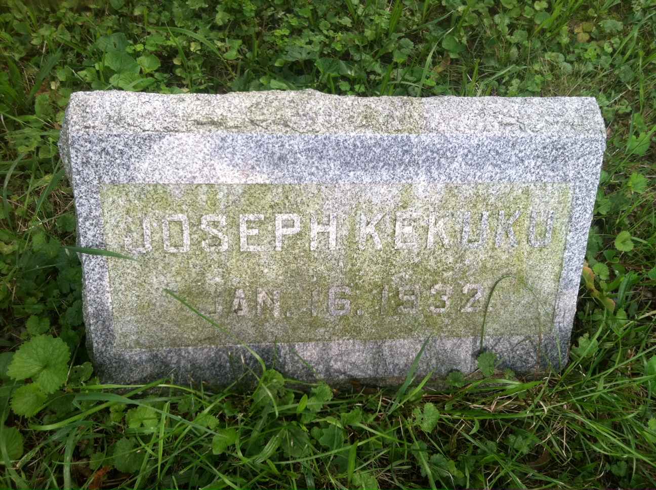 Kekuku is buried in the Orchard Street Cemetery. A small marker at the Orchard Street Cemetery reads: JOSEPH KEKUKU JAN. 16, 1932 marking his final resting place.