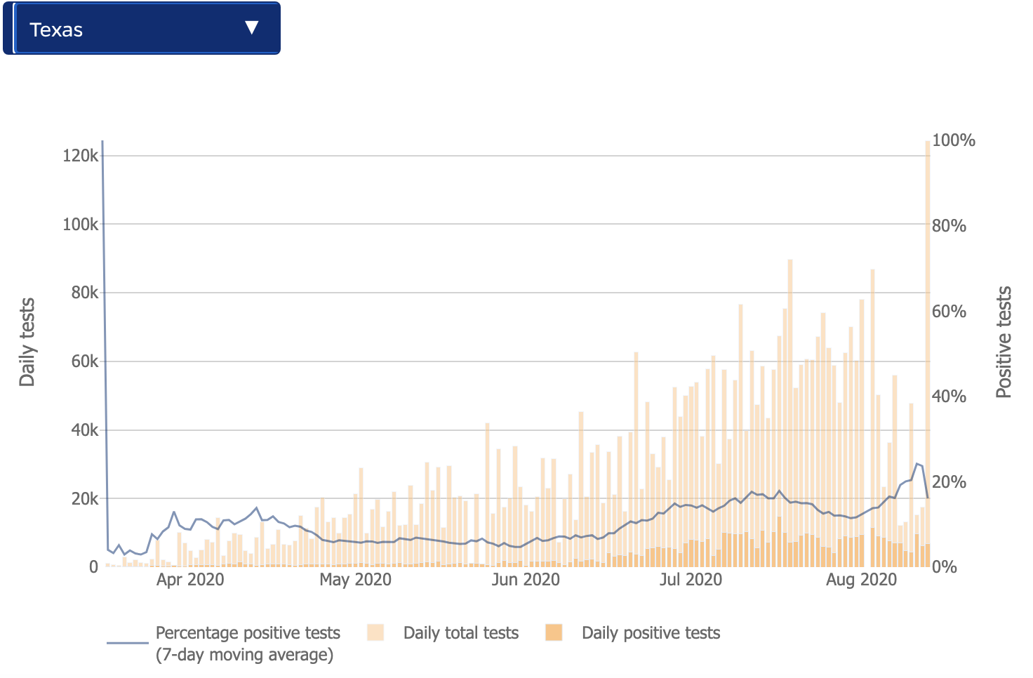 COMMENTS: We rose a rank, to 17th, in tests per million but we are still far short of any reasonable goal for daily testing. Other nations that have the their numbers under control require less daily testing than countries that have very high infection rates. USA Today reports that “As testing has slowed, positive rates increased over the past week in 35 states as of Friday, according to Johns Hopkins University’s Coronavirus Resource Center. ” On Sunday the New York Times also reported on the declining trend in testing and reiterated the point that the number of tests given per day in the United States should be in the millions to effectively fight the spread of the disease. Business Insider reported that the decline in testing over the past two weeks amounts to a 13% reduction. And CBS News has pointed out that the decline in testing calls the accuracy of COVID-19 data into question. As testing declines, so do the number of reported positive cases. At the same time, less testing means that only symptomatic people are getting tested, which raises the positivity rates. High positivity rates and dropping numbers of new cases appears to be evident in a number of states. The fear, of course, is that the testing decline may be a harbinger of political manipulations to justify political goals.