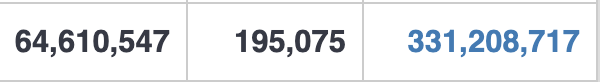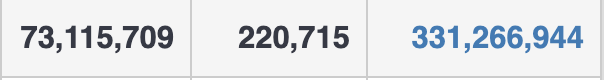UNITED STATES SHARE OF THE GLOBAL TOTALS04.3% …………… U.S. POPULATION25.7% …………… TOTAL COVID-19 CASES22.5% ………….. TOTAL COVID-19 DEATHS 21.2% …………… NEW COVID-19 CASES (24hr) 18.8%. ………….. NEW COVID-19 DEATHS (24hr) 18th ………….. GLOBAL RANK IN TESTS PER MILLION