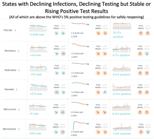 A visual review of available data on testing and new case reporting suggests that this might be happening in some states, but it isn’t conclusive. A more sophisticated statistical analysis would be needed. Some of the visual data I looked at is included below. (continue viewing at Data-Driven Viewpoints blog)