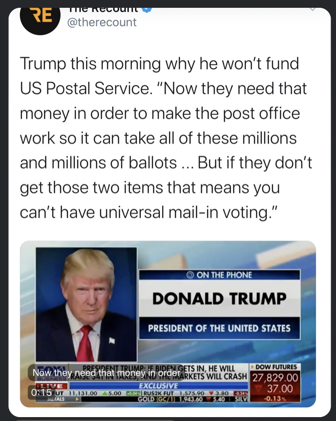 When President Trump says that mail-in-voting will create a mess in this election, that isn’t a prediction… it is a direct threat by a man who is already acting to deliver on it.
